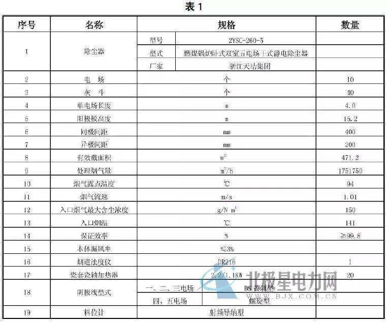 改造前電除塵器性能參數(見表1)。
